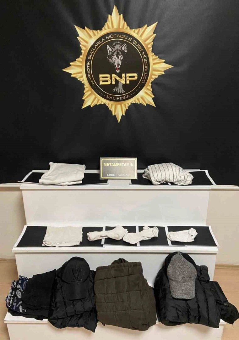 Balıkesir’de narkotik ekiplerinin düzenlediği operasyonda, kıyafetlere emdirilmiş 3 kilo 742 gram metamfetamin ele geçirildi.