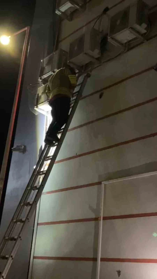 Vatandaşların ihbarı üzerine olay yerine gelen itfaiye ekipleri, merdiven yardımıyla çıktıkları noktada klima motoruna sıkışan yavru kediyi dikkatli bir çalışmanın ardından bulunduğu yerden kurtardı.