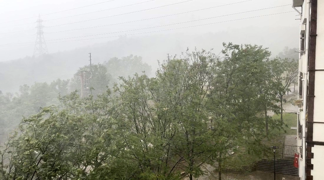 Kocaeli’de rüzgar ve sağanak etkili olurken, şehrin üstünü kısa süreli kara bulutlar kapladı.