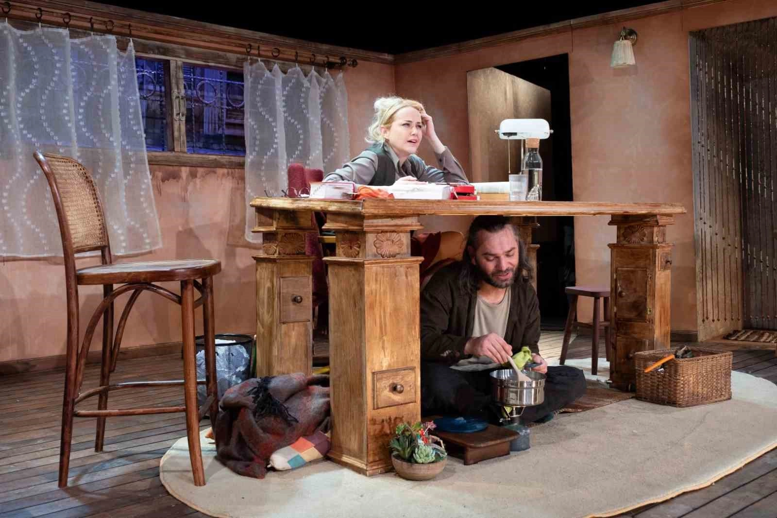 Absürt komedi türündeki "Masanın Altında" adlı oyun, ilçe sakinlerinden yoğun ilgi gördü. Salonu dolduran tiyatroseverler, Fransa’ya sığınmacı olarak gelen Dragomir’in, çevirmen Florence’ın çalışma masasının altını kiralamasıyla gelişen olayları konu alan eseri beğeniyle izledi.