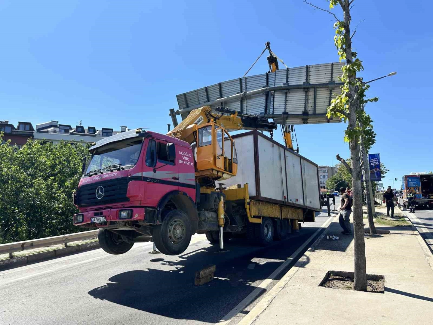 Olayda yaralanan olmazken, levhada ve vinçte maddi hasar oluştu.