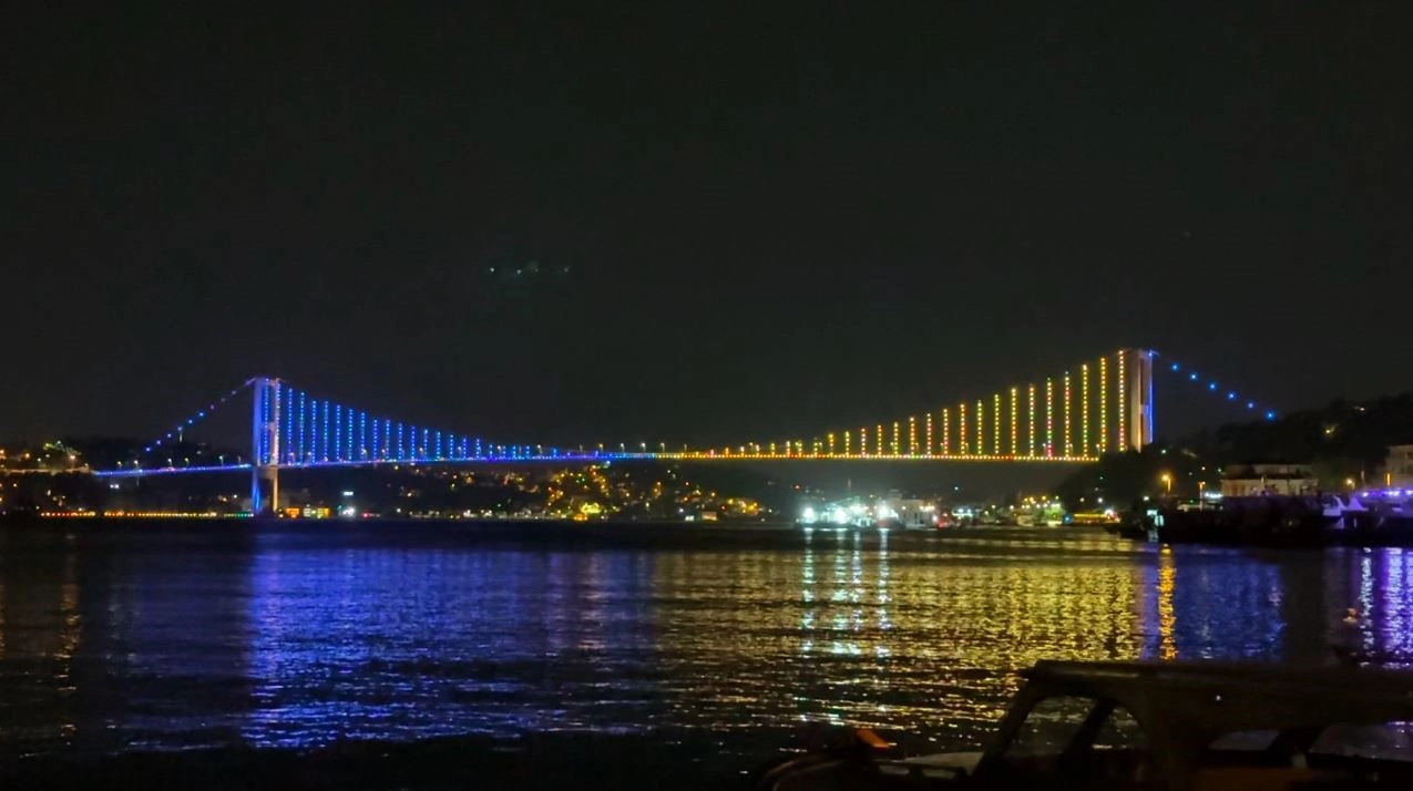Dün akşam da 15 Temmuz Şehitler, Fatih Sultan Mehmet ve Yavuz Sultan Selim köprüleri de sarı lacivertli renklere büründü.