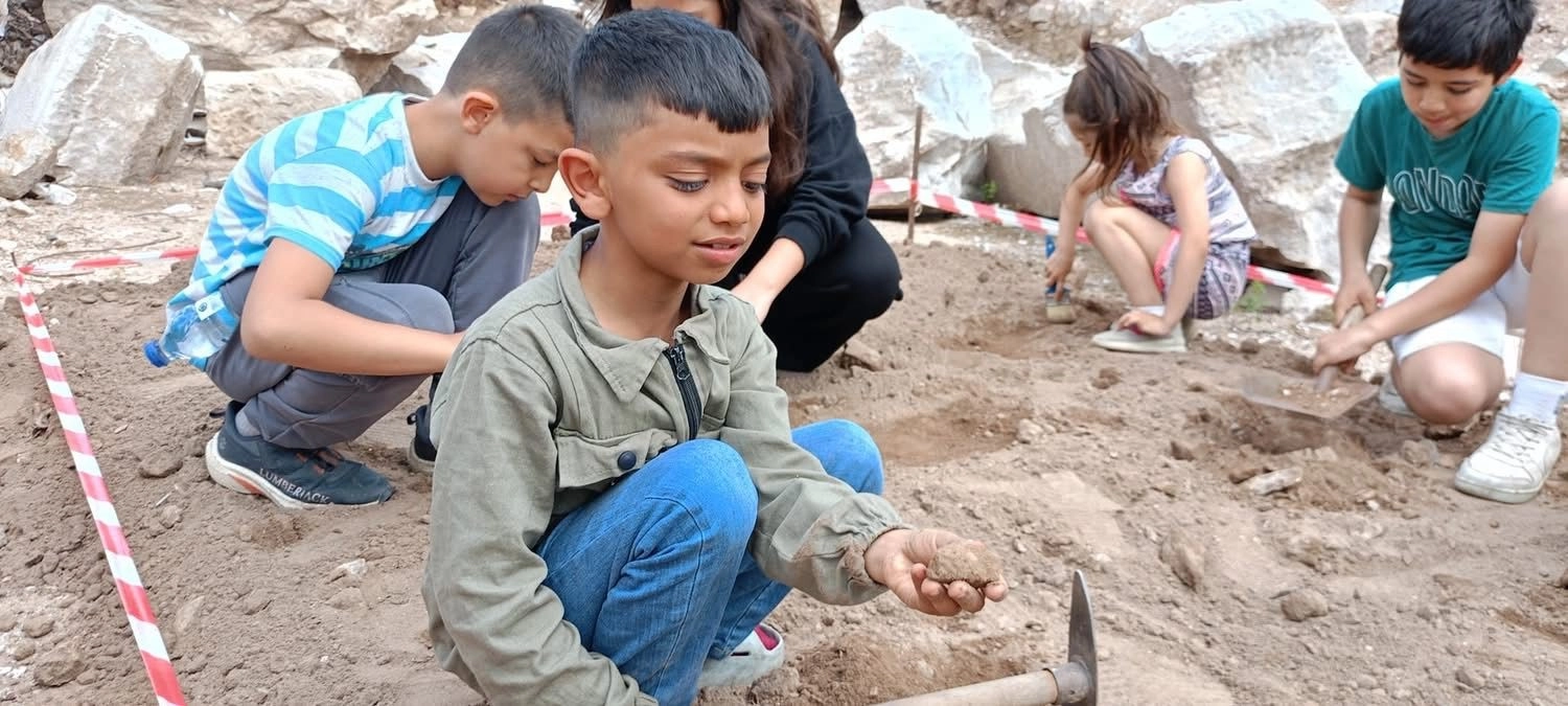 Uluslararası Müzeler Haftası çerçevesinde Bandırma’nın Çınarlı Mahallesi’nden katılan çocuklar, Kyzikos Antik Kenti’nde yer alan Adrian Tapınağı çevresinde arkeolojik kazı deneyimi yaşadı.