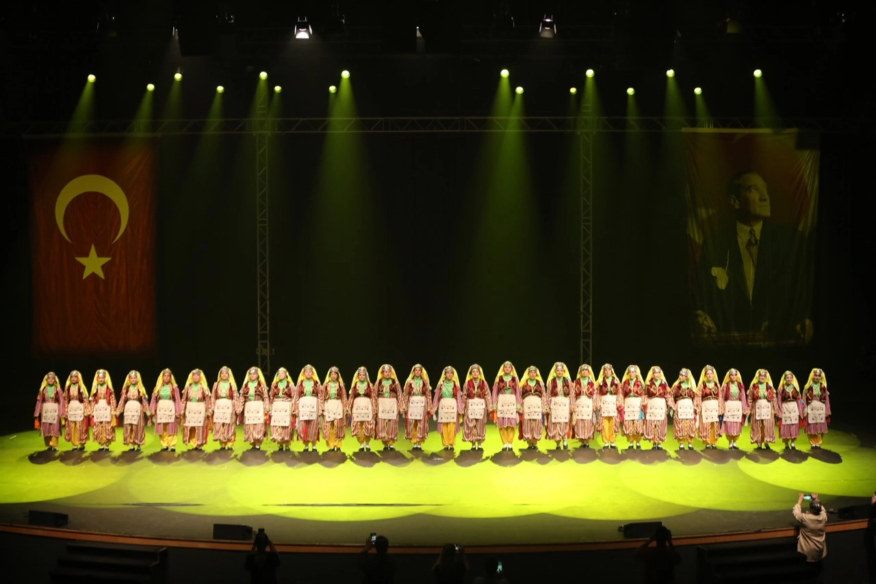 Gösteride 13 gruptan oluşan 500 dansçı, Anadolu’nun çeşitli yörelerinden halk oyunlarını sahneledi.