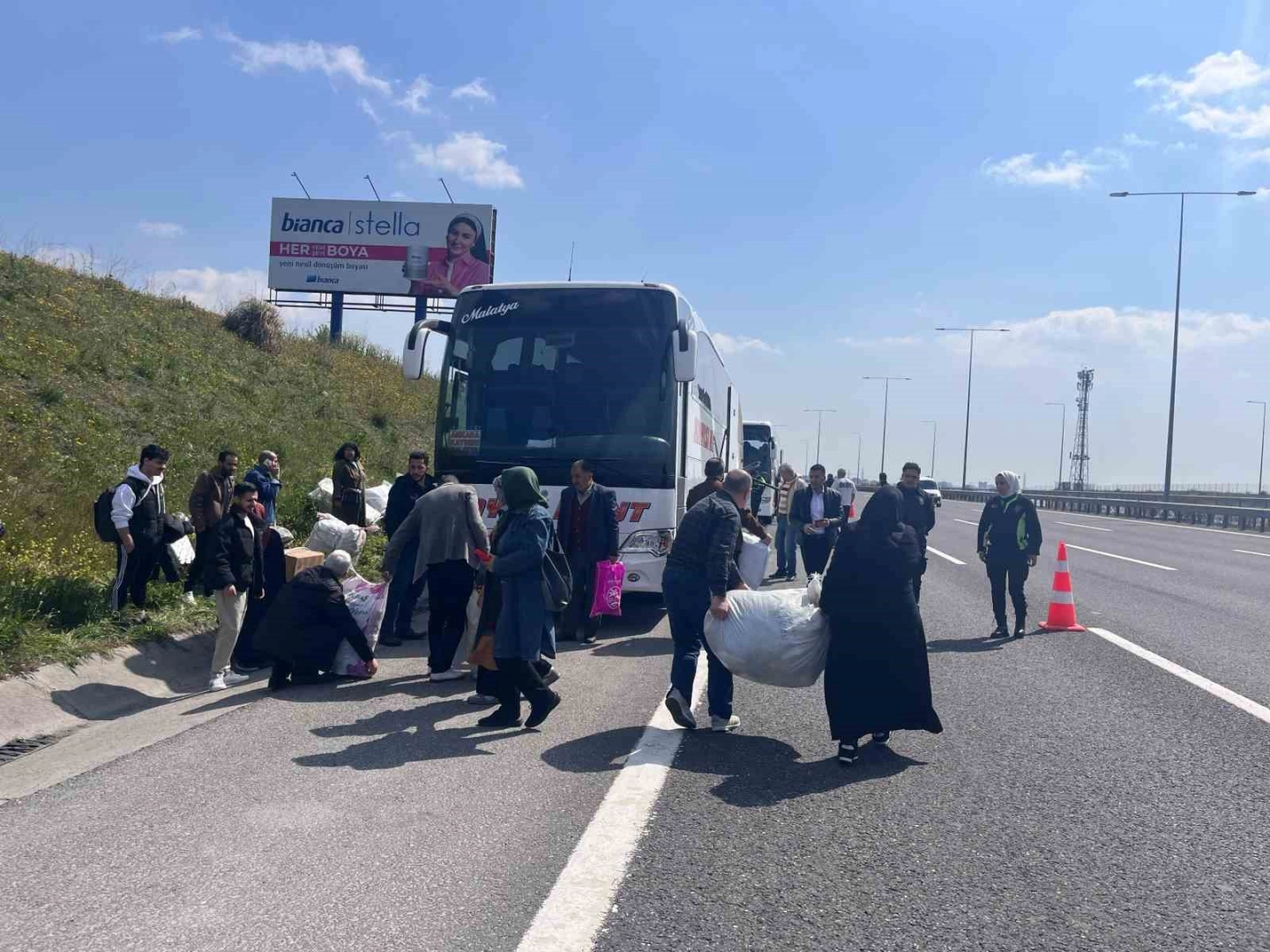 Olay, 14.15 sıralarında Kuzey Marmara Otoyolu Başakşehir mevkiinde meydana geldi. Edinilen bilgiye göre İstanbul’dan Malatya’ya seyir halindeki 44 AGZ 649 plakalı Kayısı Kent firmasına ait Mercedes marka otobüs, bir anda yanmaya başladı. Kısa sürede motor kısmını alevler sararken, otobüsün içerisine duman dolmaya başladı. Yolcuların hemen araçtan tahliye edildiği ve herhangi bir yaralanmanın yaşanmadığı öğrenildi. Farklı bir otobüsün gelmesi ile vatandaşlar seyahatlerine devam etti.