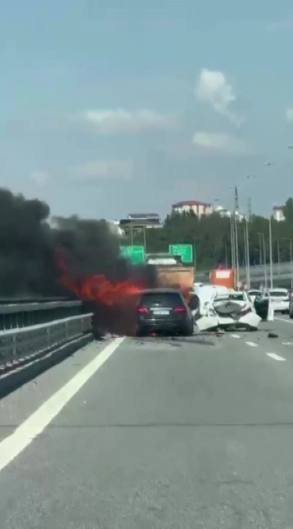 Kaza, Kuzey Marmara Otoyolu’nun Çekmeköy mevkii Edirne istikametinde saat 10.00 sıralarında meydana geldi. İddiaya göre yolda ilerleyen 34 DNE 248 plakalı otomobil bir anda yavaşladı. Yavaşlayan otomobille aynı istikamette ilerleyen hafif ticari araç ve arkadan gelen başka bir aracın çarpışmasıyla zincirleme kaza meydana geldi. Kazada araçlarda bulunan 3 kişi yaralandı. Kazaya karışan hafif ticari araç ve otomobil kazanın ardından alev alev yanmaya başladı.