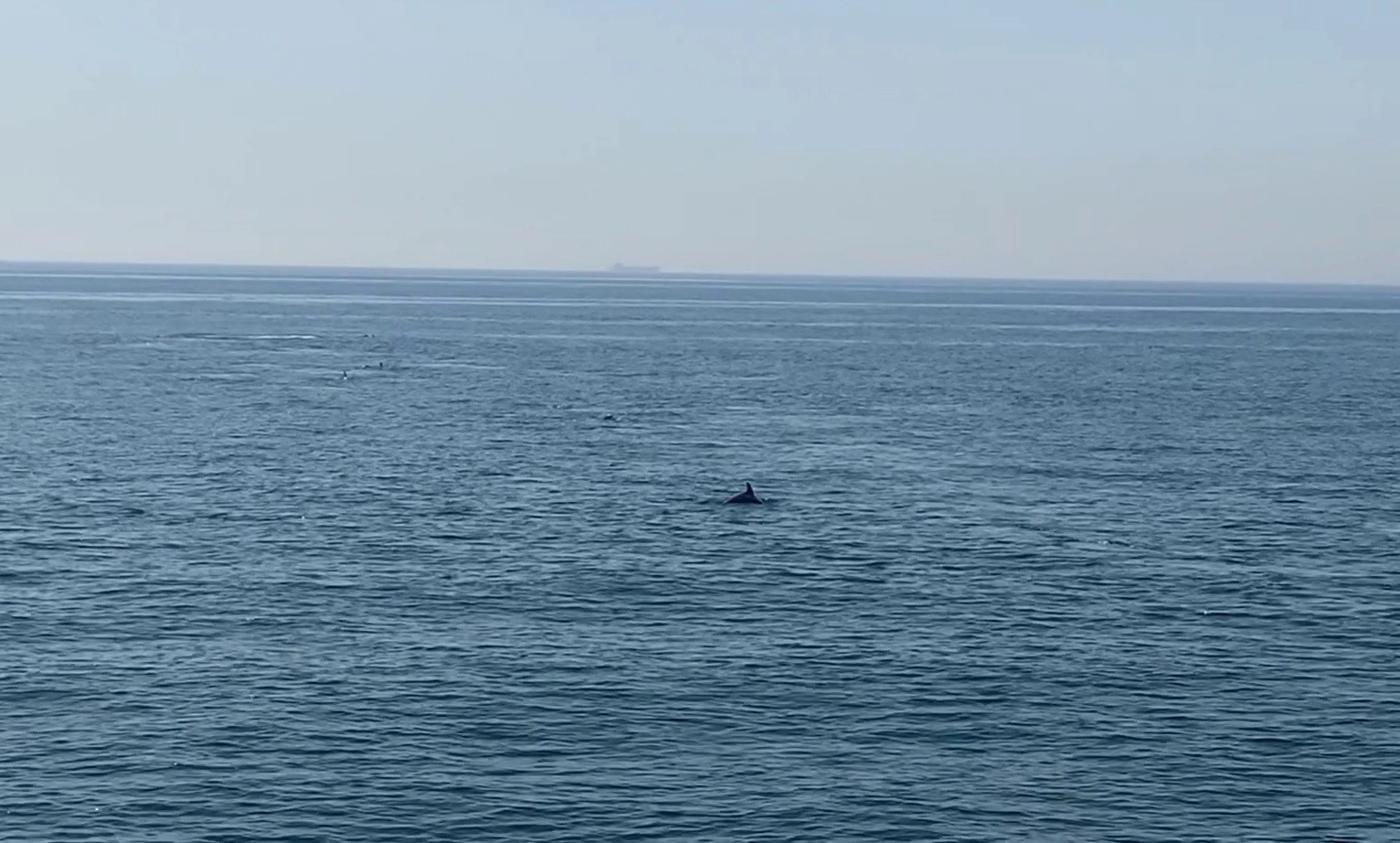 Marmara Denizi açıklarında görüntülenen yunus balıkları, sergiledikleri neşeli hareketlerle adeta görsel bir şölen sundu.