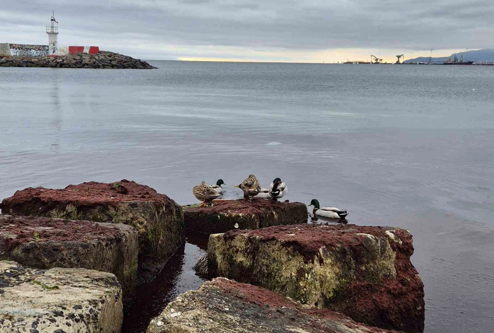 Marmara Denizi’nin Tekirdağ kıyılarında lodos sonrası yoğun miktarda kızıl yosun birikimi meydana geldi.