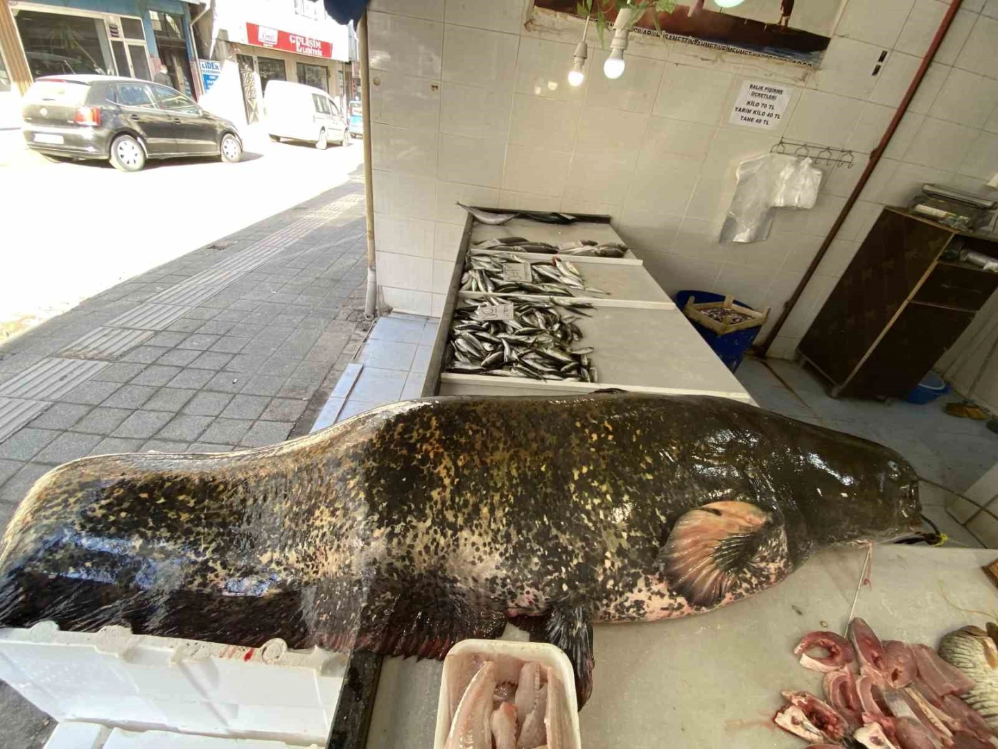 Uzun uğraşlar sonucu yayın balığını kıyığa çıkarmayı başaran amatör balıkçılar, tuttukları dev balığı Uzunköprü’ye getirerek balıkçıya sattı. Balıçı Ahmet Tosun, satın aldığı 65 kilogramlık balığı tezgahında sergilemeye başladı.