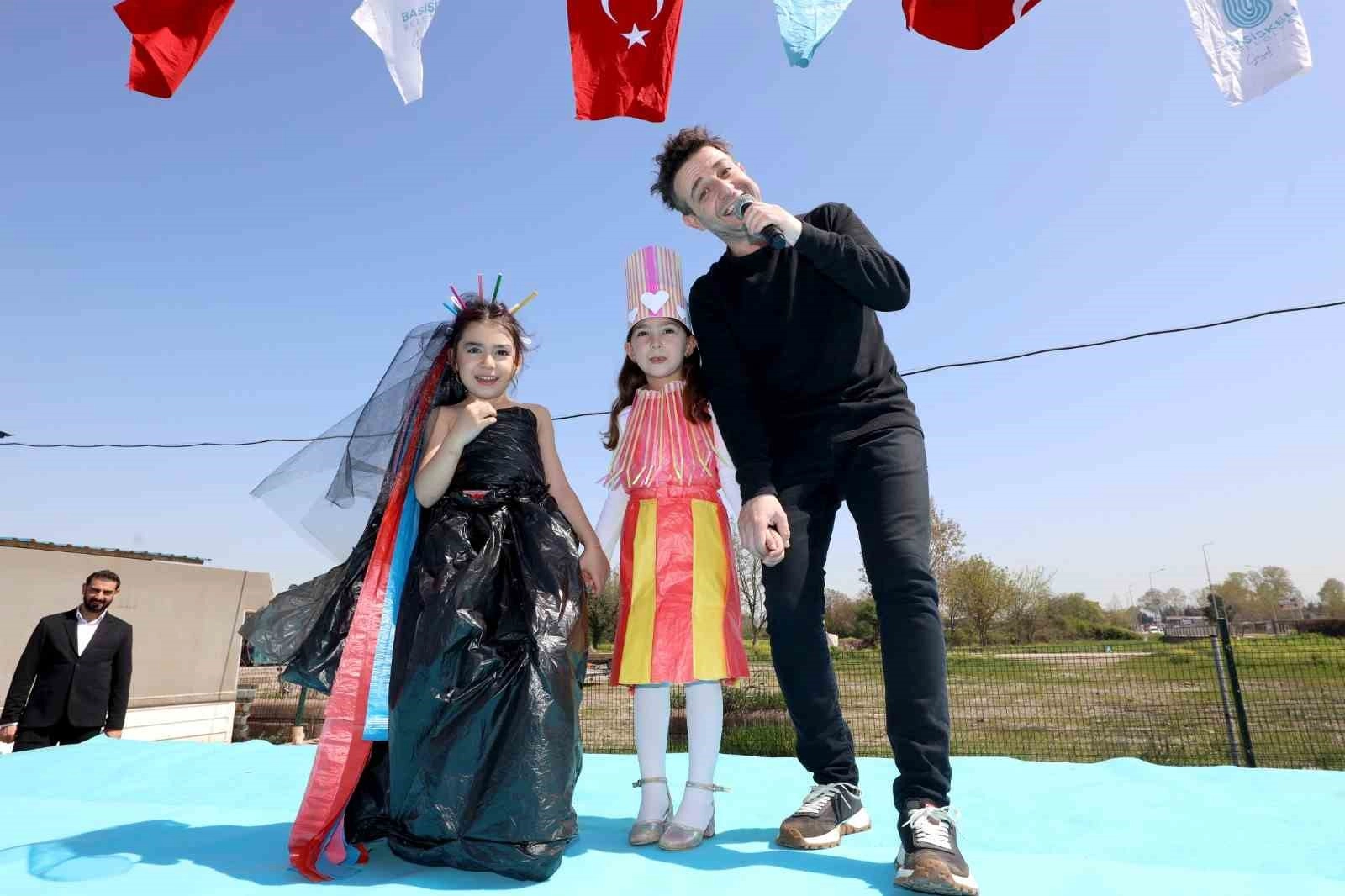 Eğlenceli geçen etkinlikte minik öğrenciler geri dönüşüm malzemelerinden defile gerçekleştirdi.