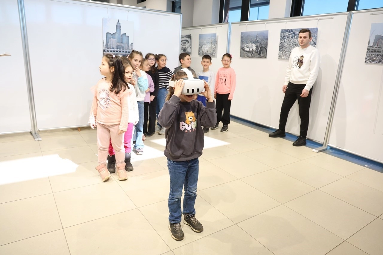 Minikler, Kabe’nin fotoğraflarının sergilendiği fotoğraf galerisini de gezdikten sonra, sanal gerçeklik gözlükleri sayesinde kutsal topraklara yolculuk gerçekleştirdi. Sanal gerçeklik teknolojisiyle eşsiz deneyim yaşayan çocuklara çeşitli hediyeler verildi