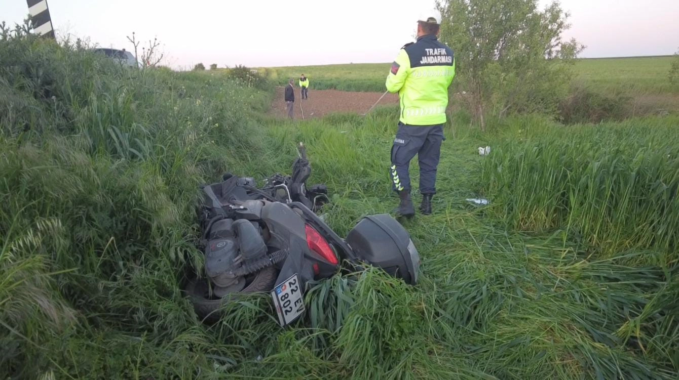 Edirne’nin Karayusuf Köyü yolunda Mustafa Babacan’ın kullandığı 22 EV 802 plakalı motosiklet, kontrolden çıkması sonucu tarlaya uçtu.