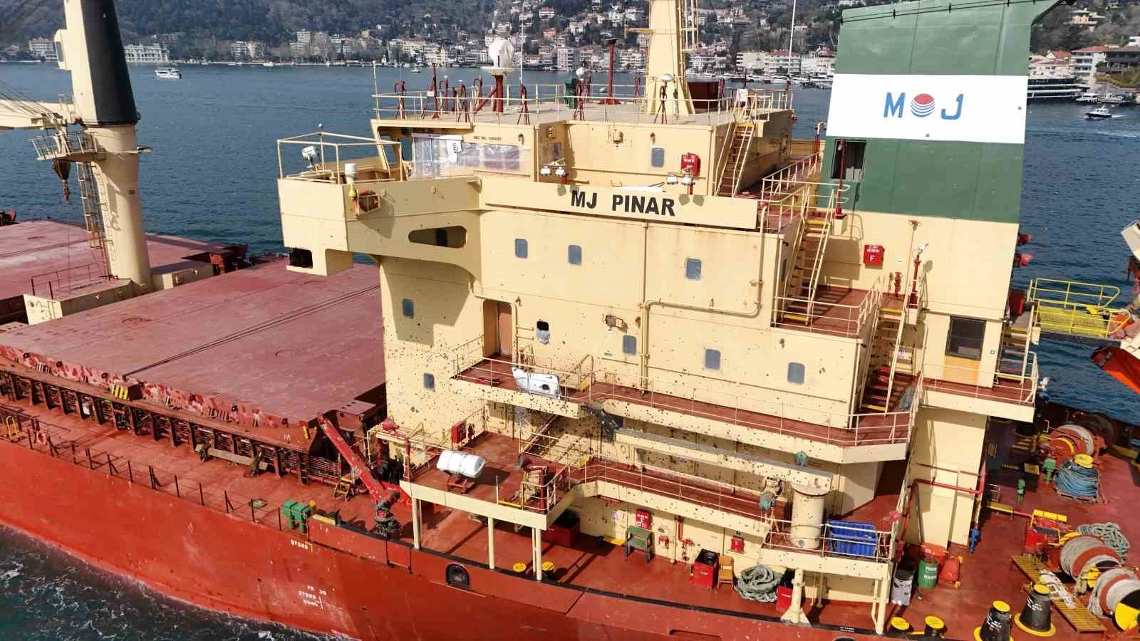 Ukrayna’nın Odessa Limanı’nda saldırıya uğrayan Barbados bayraklı 178,7 metre uzunluğundaki dökme yük gemisi MJ Pınar, İstanbul Boğazı’ndan geçti.