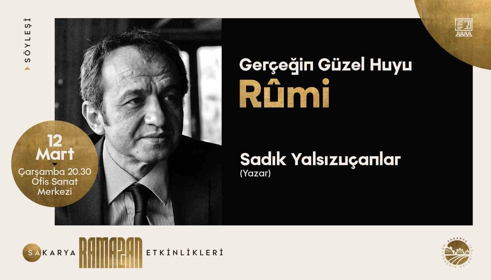 Sakarya Büyükşehir Belediyesi, Ramazan ayının manevi atmosferine uygun etkinlikler düzenlemeye devam ediyor. Mevlana’nın hoşgörü, sevgi ve insanın kendini tanıma yolculuğu üzerine bıraktığı mirasın konuşulacağı programda Sadık Yalsızuçanlar, Rumi’nin eserlerinden yola çıkarak günümüz insanına yönelik mesajlar verecek. Edebiyatçı ve yazar Sadık Yalsızuçanlar, 12 Mart Çarşamba günü saat 20.30’da Ofis Sanat Merkezi’nde Mevlana’nın düşünce dünyasına derinlemesine bir bakış sunacak.