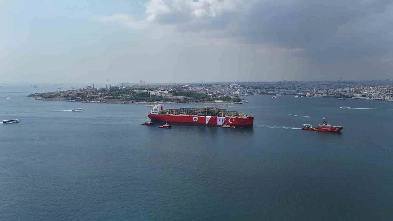yıl dönümünde İstanbul Boğazı’ndan geçerek Karadeniz’e doğru yol aldı. Dev platformun geçişi, dron ile havadan görüntülendi.