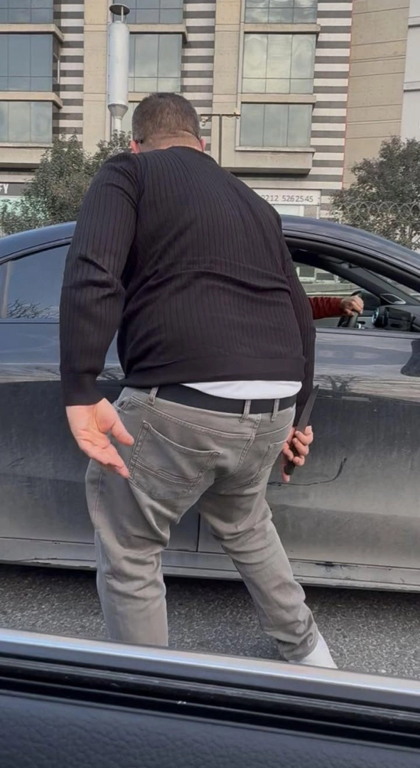 Küçükçekmece Halkalı Mahallesi’nde dün öğle saatlerinde trafikte seyir halindeki bir minibüs şoförü, önünde seyreden otomobil sürücüsü ile henüz bilinmeyen bir nedenle tartışmaya başladı. Tartışmanın kısa sürede büyüyerek kavgaya dönüştüğü olayda, minibüs şoförü elinde bıçak ile araç sürücüsüne tehdit ve hakaretler savurdu. O anlar, trafikteki diğer sürücüler tarafından anbean kayda alındı. İhbar üzerine olay yerine gelen polis ekipleri, minibüs şoförü G.B.’yi (37) gözaltına aldı.