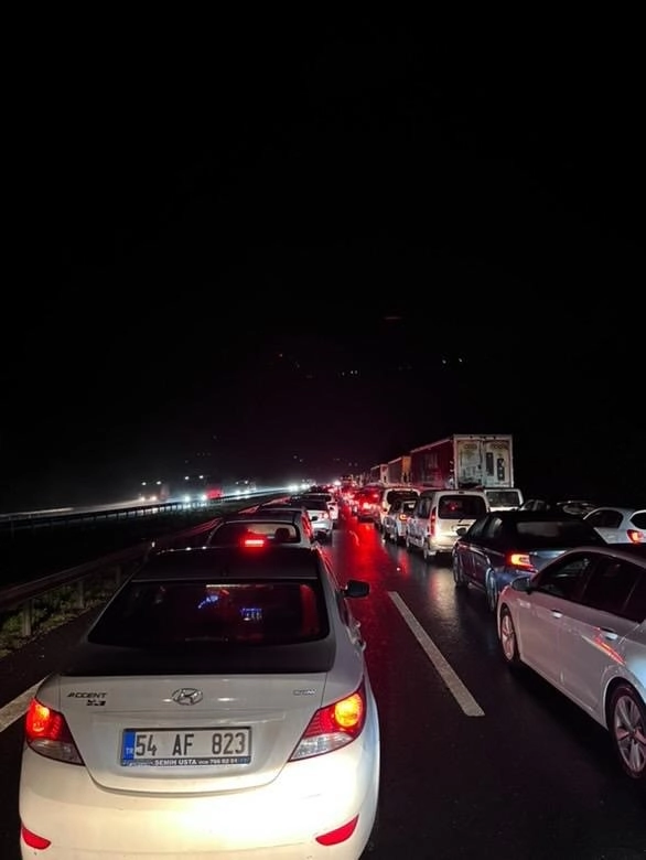 Anadolu Otoyolu Sakarya geçişinde tırın makaslaması neticesinde meydana gelen kazada uzun araç kuyrukları oluştu.