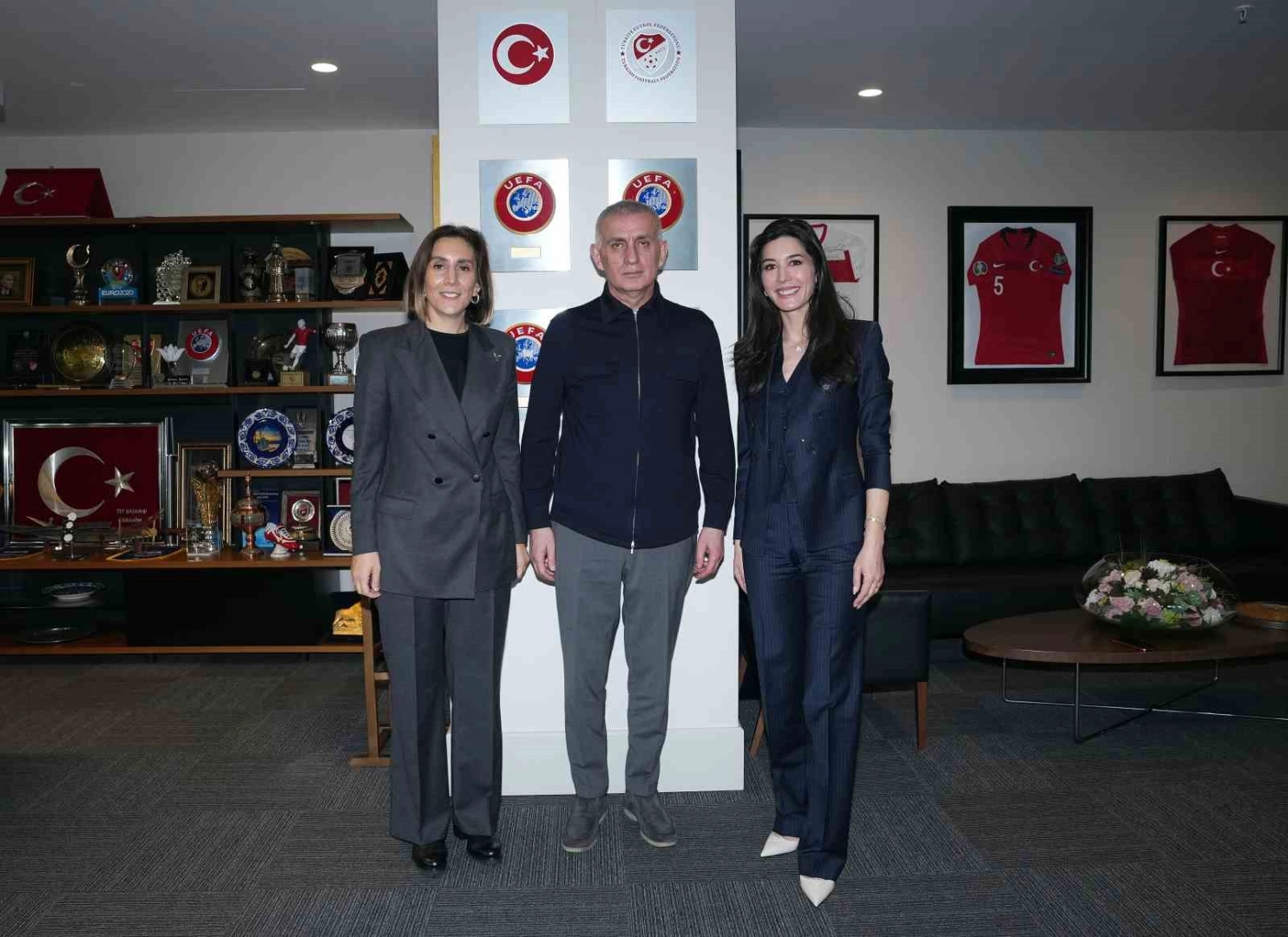 Beşiktaş Kulübü Yönetim Kurulu Üyesi Merve Öztopaloğlu ve Trabzonspor Kulübü Yönetim Kurulu Üyesi Gözde Atasoy, Türkiye Futbol Federasyonu Başkanı İbrahim Hacıosmanoğlu’nu makamında ziyaret etti.