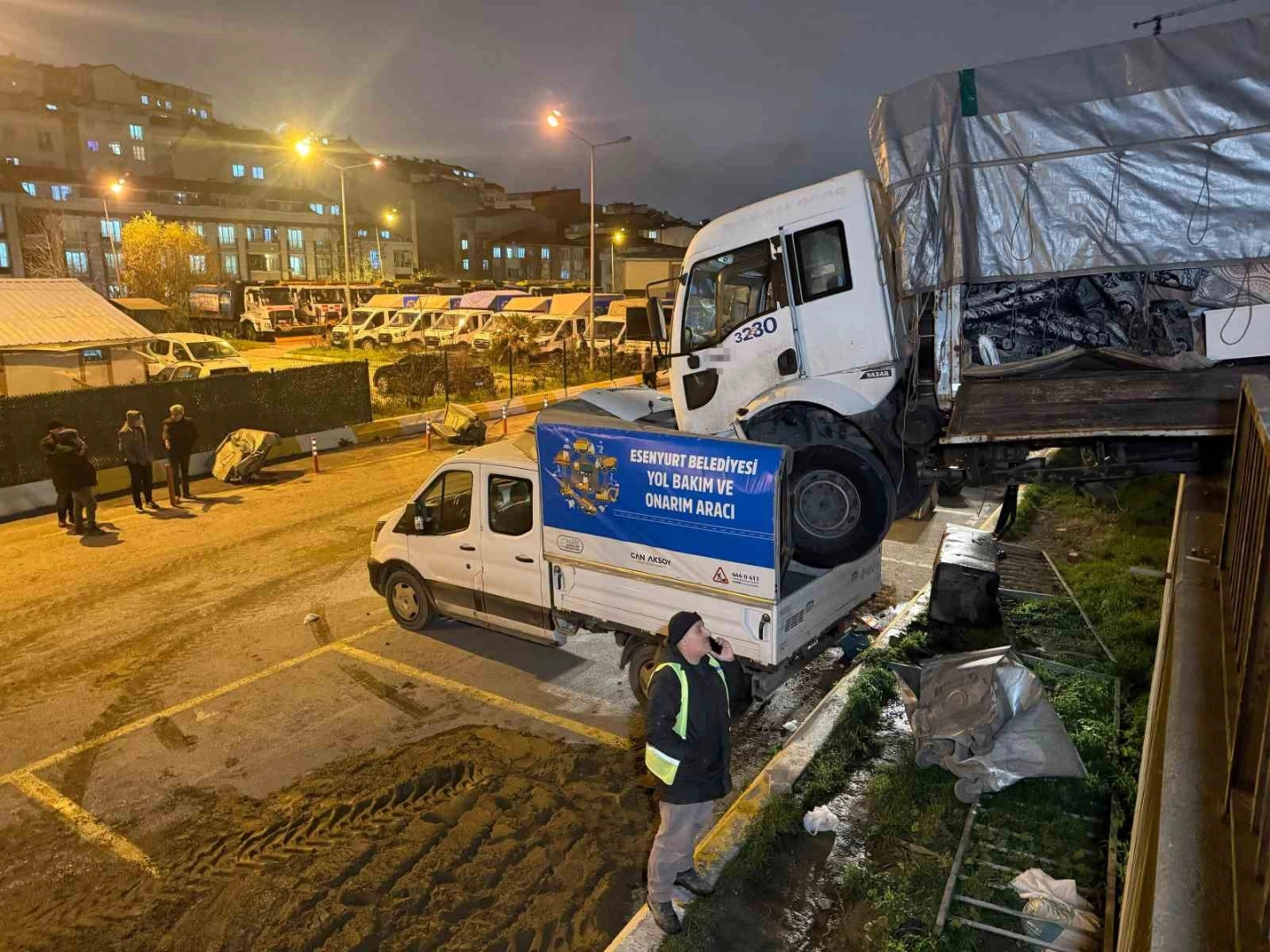 Kaza, saat 18.30 sıralarında Esenyurt Piri Reis Mahallesi 2269. Sokak’ta meydana geldi. Edinilen bilgilere göre, park halinde bulunan 65 HA 205 plakalı kamyon, bir anda kendi kendine hareket ederek ilerlemeye başladı. Garaj duvarındaki korkuluklara çarpan kamyon, yakınlarda bulunan bir garajdaki park halinde olan başka bir kamyonetin üzerine düştü. Kazada yaralanan olmazken, her iki araçta da maddi hasar meydana geldi. İhbar üzerine polis ve itfaiye sevk edildi. Kazaya karışan araçlar kaldırılırken, olayla ilgili inceleme başlatıldı.