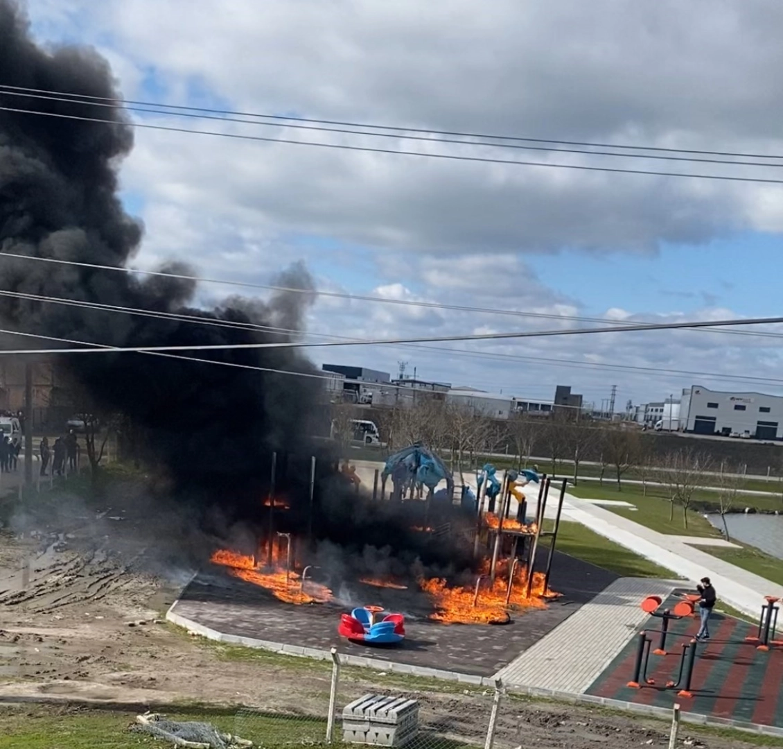 Tekirdağ’ın Ergene ilçesinde çocukların yaktığı ateş nedeniyle parktaki oyun grupları alev alev yandı.