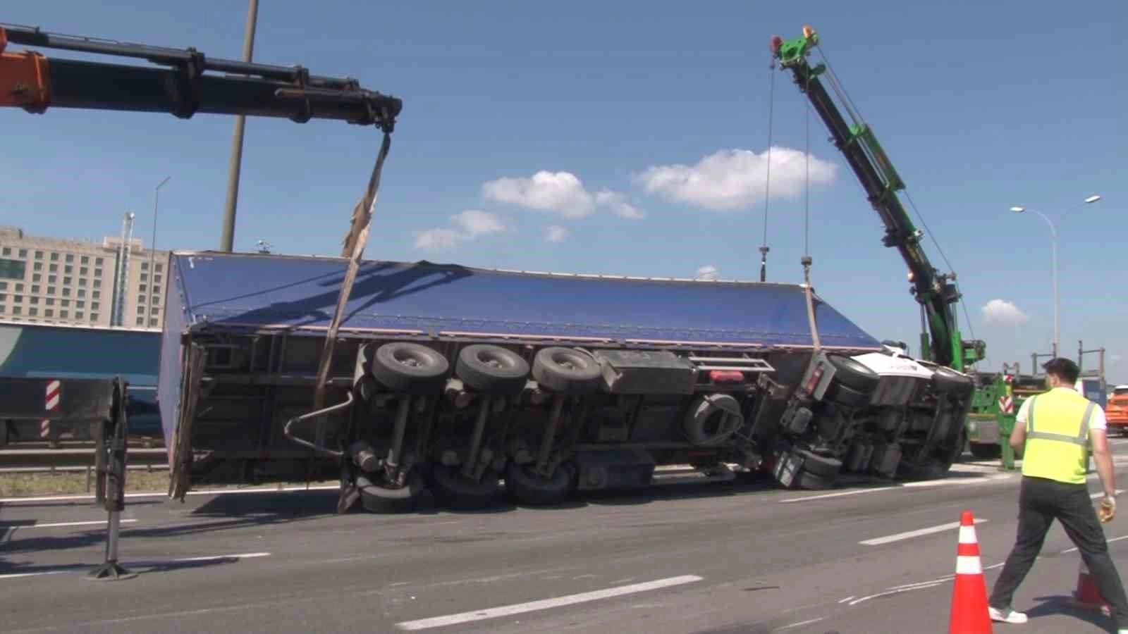 Pendik’te TEM Otoyolu’nun Kurtköy mevkiinde saat 05.40 sıralarında meydana gelen kazada, iddiaya göre 34 BPT 95 plakalı Mercedes markalı tırın sürücüsü Eyüp Tanrıverdi, önüne çıkan bir otomobile çarpmamak için direksiyonu kırınca tırın kontrolünü kaybetti. Kontrolden çıkan tır yola devrildi. Sürücü Tanrıverdi hafif yaralanırken, olay yerine polis, sağlık ve itfaiye ekipleri sevk edildi. Kaza nedeniyle TEM Otoyolu’nun İstanbul istikametinde trafik yoğunluğu oluştu.