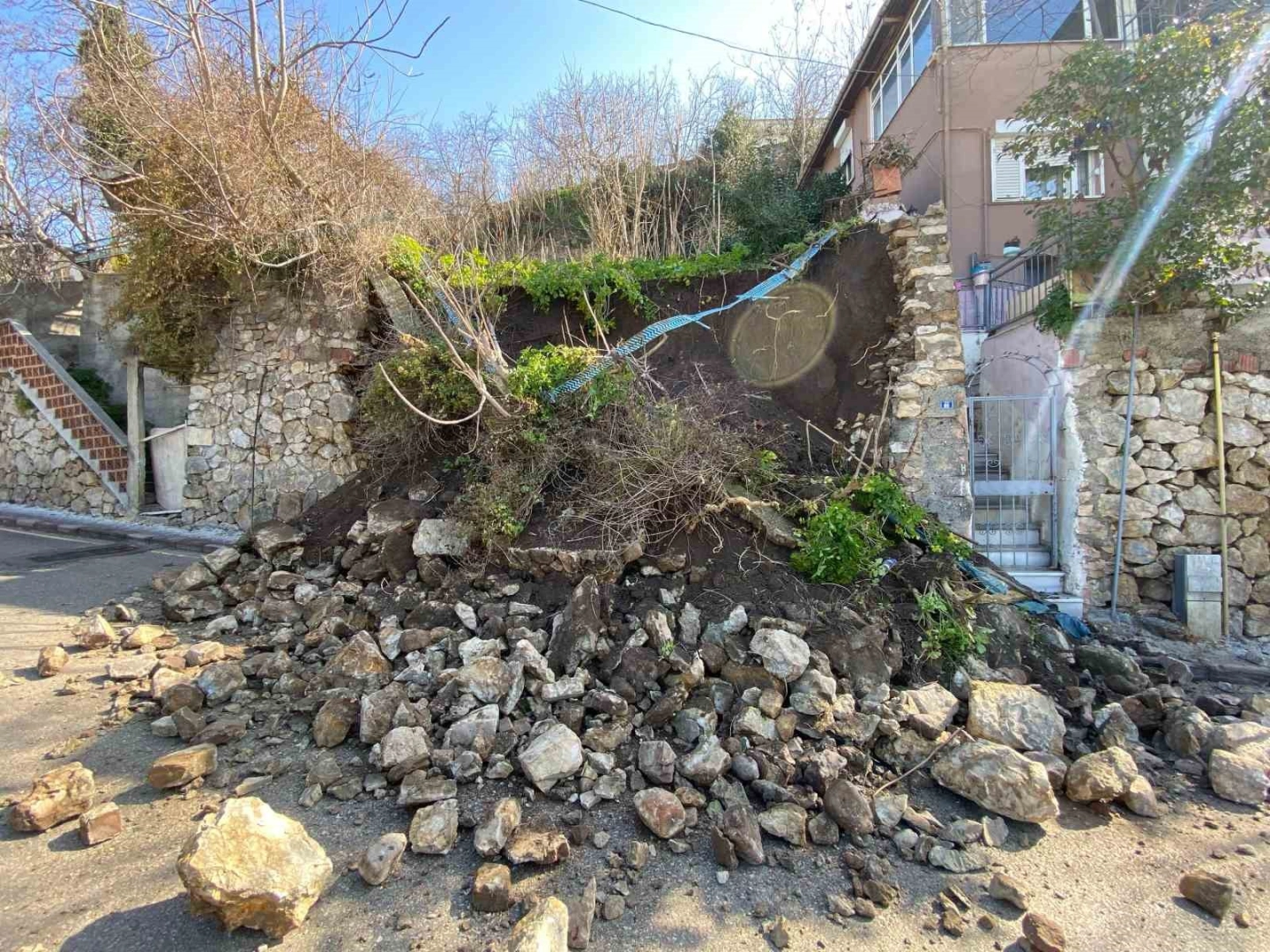 Olay, Orhan Mahallesi Saadettin Yalın Caddesi 3. derece sit alanında meydana geldi. Henüz bilinmeyen nedenle istinat duvarı çöktü. Çökme sebebiyle yıkılan duvar, toprak ve ağaçlarla birlikte yola kaydı. İhbar üzerine 112 Acil Çağrı Merkezi’ne haber verildi. Olay yerine polis ve zabıta ekipleri ekipleri sevk edildi. Ekipler, şeritlerle sokağı kapatırken, yaya giriş ve çıkışlarını engellendi. 2 katlı binada kalan 3 kişilik aile tahliye edildi. Herhangi bir yaralanma veya can kaybı yaşanmadı.