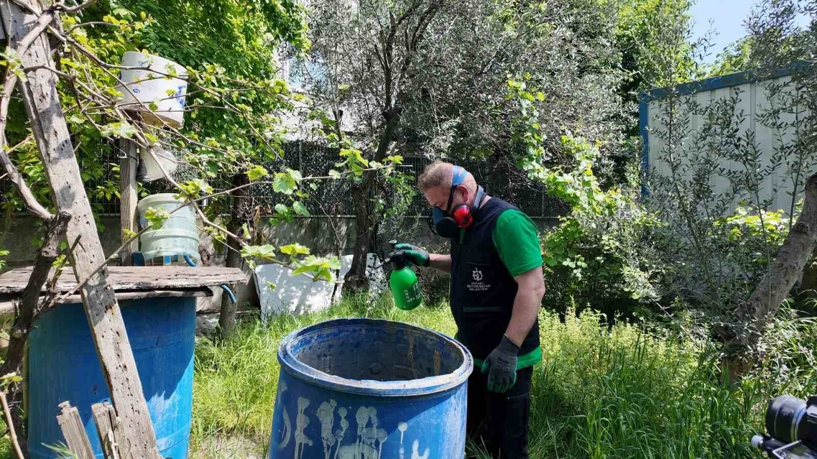 Sivrisineklerin üremesi için en uygun ortamları oluşturan durgun su birikintileri, yaz aylarında en büyük risk faktörlerinden biri olarak öne çıkıyor. Büyükşehir ekipleri, bu tür alanları düzenli olarak kontrol ederek larva gelişimini önlemeye yönelik biyosidal uygulamalar gerçekleştiriyor. Sivrisinek aracılığıyla bulaşan hastalıkların önlenmesi amacıyla evlerin etrafında bulunan su depolama tankları, kova, varil, bidon gibi su biriktirme kaplarının üzerlerinin kapatılmasının gerekli olduğunu belirtiyor. Yağmur sonrası oluşan su birikintilerinde, oluklarda, saksı altlarında bırakılan sular da belli bir süre beklediğinde sivrisineklerin üremesi için ideal bir ortam oluşturduğunun altı çiziliyor. Sivrisinekle mücadelede vatandaşın bilinci de halk sağlığını korumada birincil önem taşıyor.