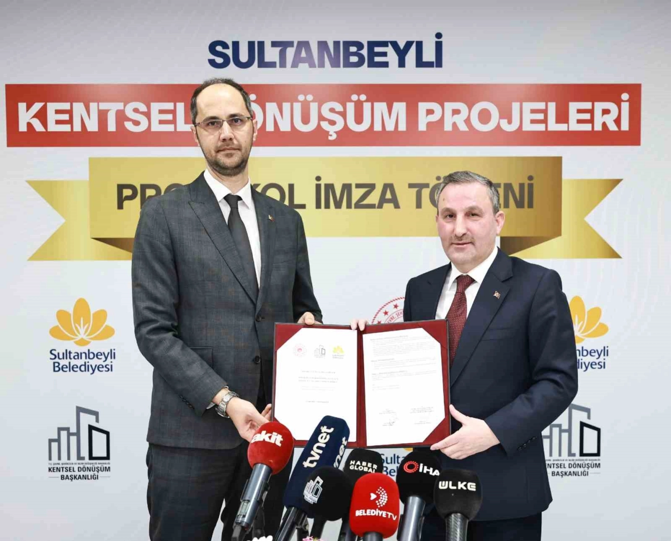 Sultanbeyli’de kentsel dönüşüm çalışmaları hız kazanarak devam ediyor. Deprem tehdidine karşı güvenli ve dirençli yapılar inşa etmek vizyonuyla sürdürülen çalışmalar kapsamında Çevre, Şehircilik ve İklim Değişikliği Bakanlığı Kentsel Dönüşüm Başkanlığı ile Sultanbeyli Belediyesi arasında önemli bir adım daha atıldı. Sultanbeyli Belediye Başkanlığı’nda düzenlenen tören kapsamında; Sultanbeyli Belediye Başkanı Ali Tombaş ile Kentsel Dönüşüm Başkanlığı Başkanı Hakkı Alp arasında "Sultanbeyli Kentsel Dönüşüm Projeleri Protokolü imzalandı.