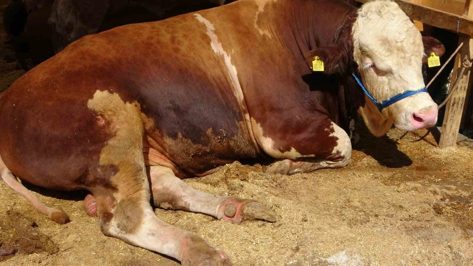 Erzurum’dan getirilen ve 1 ton 300 kilo ağırlığındaki ‘şampiyon’ ile aynı çadırda bulunan 1 ton 250 kiloluk ‘imparator’ isimli tosun, Sultanbeyli Kurban Pazarı’nda görücüye çıktı.