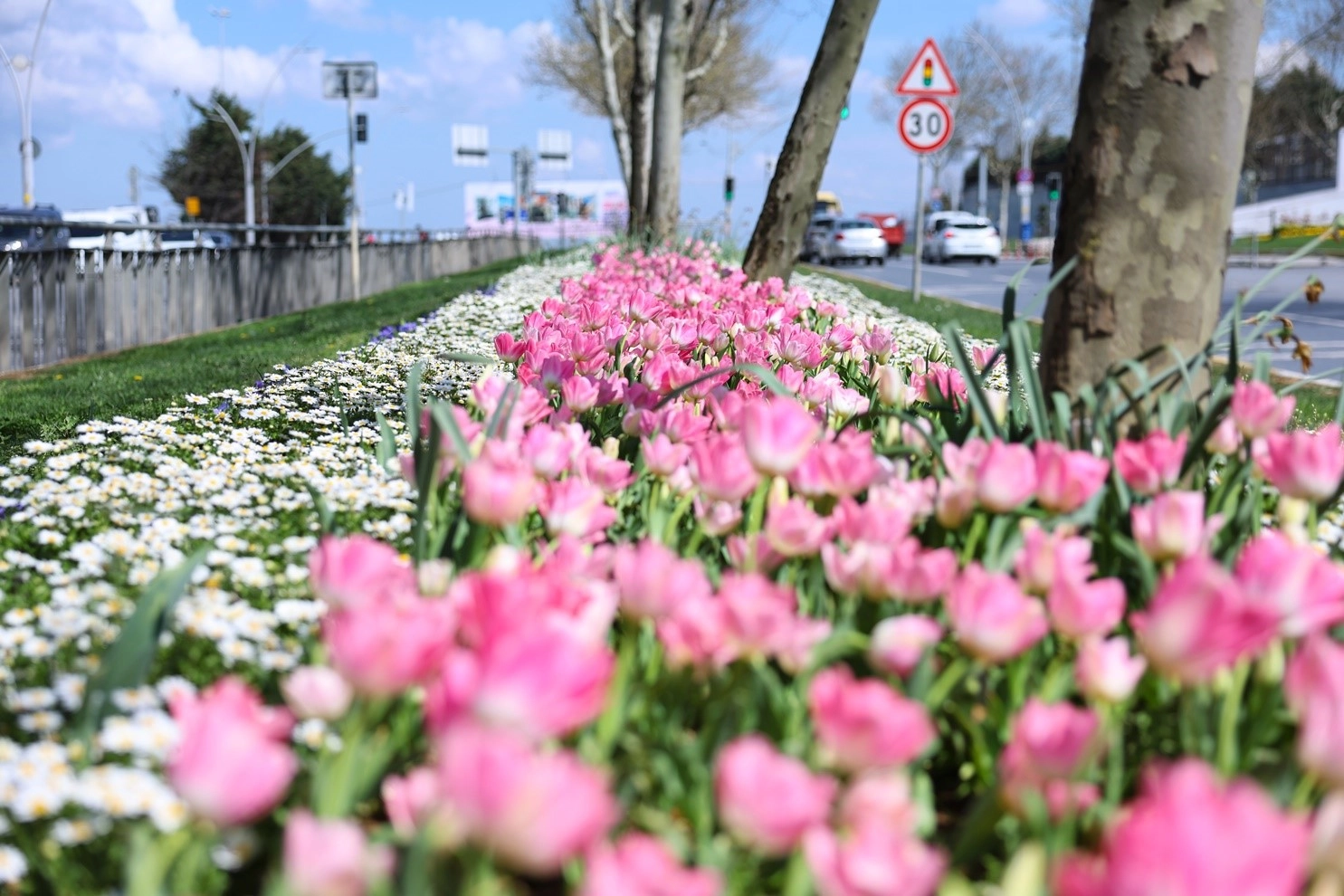 Kış aylarında dikimi yapılan lale ve mevsimlik çiçeklerin açmasıyla sokaklar rengarenk bir görünüme kavuştu.