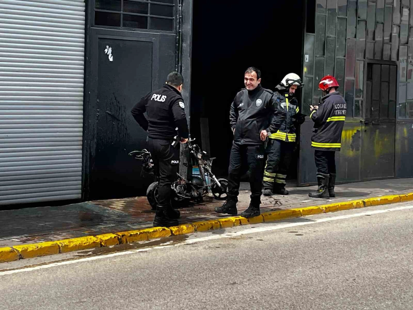 Kocaeli’nin Derince ilçesinde kaynak işlemi sırasında alev alan motosikletten geriye sadece iskeleti kaldı.