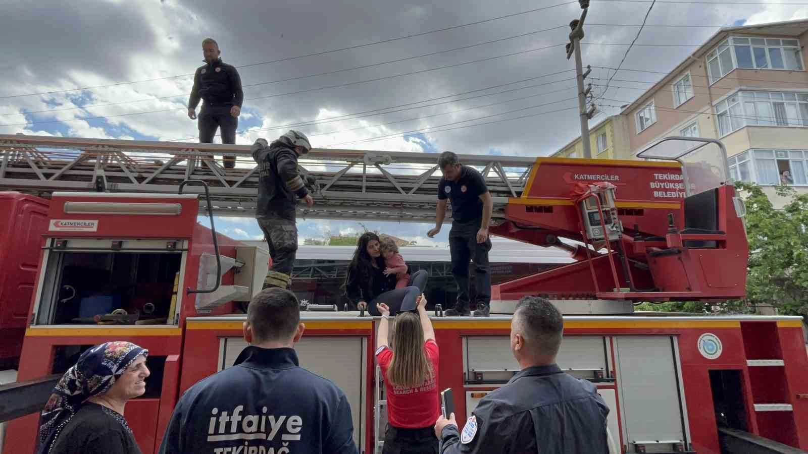 Yangın, Çorlu ilçesi Şeyh Sinan Mahallesi Abdi İpekçi Sokak’ta 3 katlı bir binanın en üst katındaki dairede meydana geldi. Evin oturma odasında çıkan yangın balkona da sıçrarken, 112 Acil Çağrı Merkezi’ne ihbarda bulunuldu. Olay yerine itfaiye, sağlık ve polis ekipleri sevk edildi. Kısa sürede olay yerine gelen itfaiye ekipleri yangını söndürdü. Dumandan etkilenen 3’ü çocuk 5 kişi ise, itfaiye aracından uzatılan merdivenle itfaiye erlerinin müdahalesi sonrası balkondan tahliye edildi.