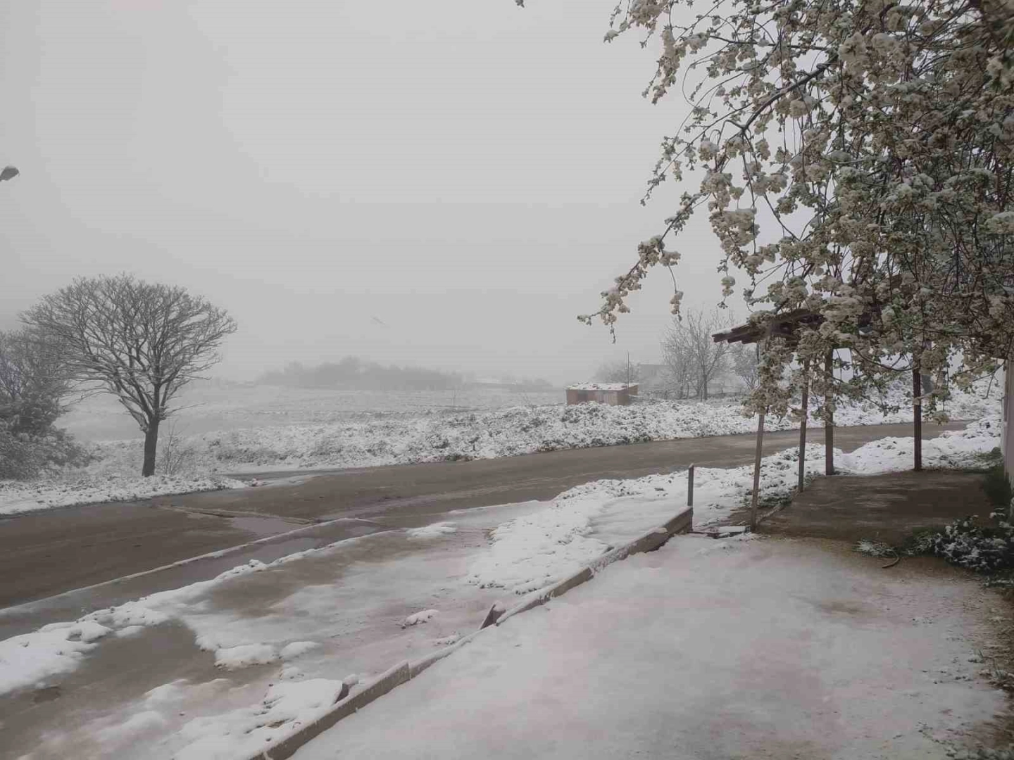 Tekirdağ’ın Malkara ilçesinde etkili olan kar yağışıyla, yüksek kesimler beyaz örtüyle kaplandı.
