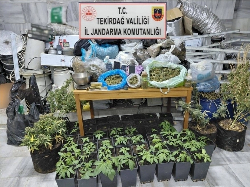 Edinilen bilgilere göre, Tekirdağ İl Jandarma Komutanlığı Marmaraereğlisi İlçe Jandarma Karakol Komutanlığı ve İstihbarat Şube Müdürlüğü ekiplerince yürütülen çalışmalar kapsamında, Marmaraereğlisi ilçesine bağlı Sultanköy Mahallesi’nde M.B. (48) ve S.G. (42) isimli şahısların ikametinde arama yapıldı. Yapılan aramalarda; 52 kök kenevir bitkisi (skunk), 16 kilogram skunk, 9 gram amfetamin, 1 adet hassas terazi, suçtan elde edildiği değerlendirilen 139 bin 850 TL, 108 adet 9 mm tabanca fişeği, 17 adet 7.65 mm tabanca fişeği, çeşitli uyuşturucu kullanım aparatları ile çok sayıda iklimlendirme ve yetiştirme ekipmanı ele geçirildi.