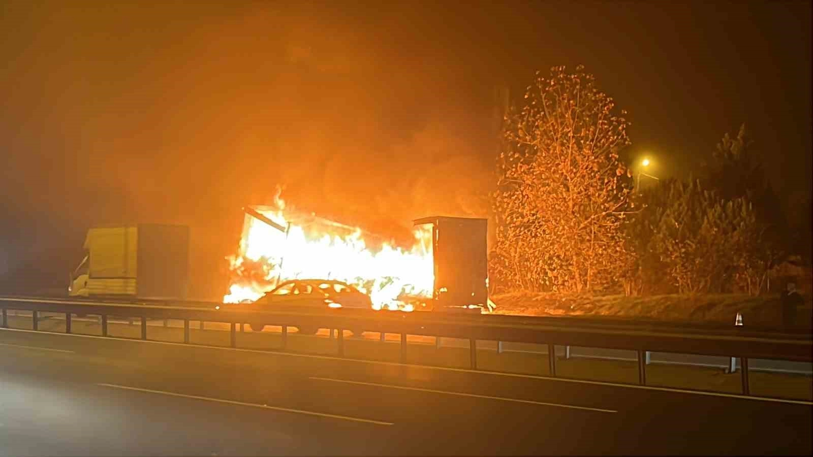 TEM Otoyolu’nun Kocaeli geçişinde seyir halindeki tır alev alev yandı.