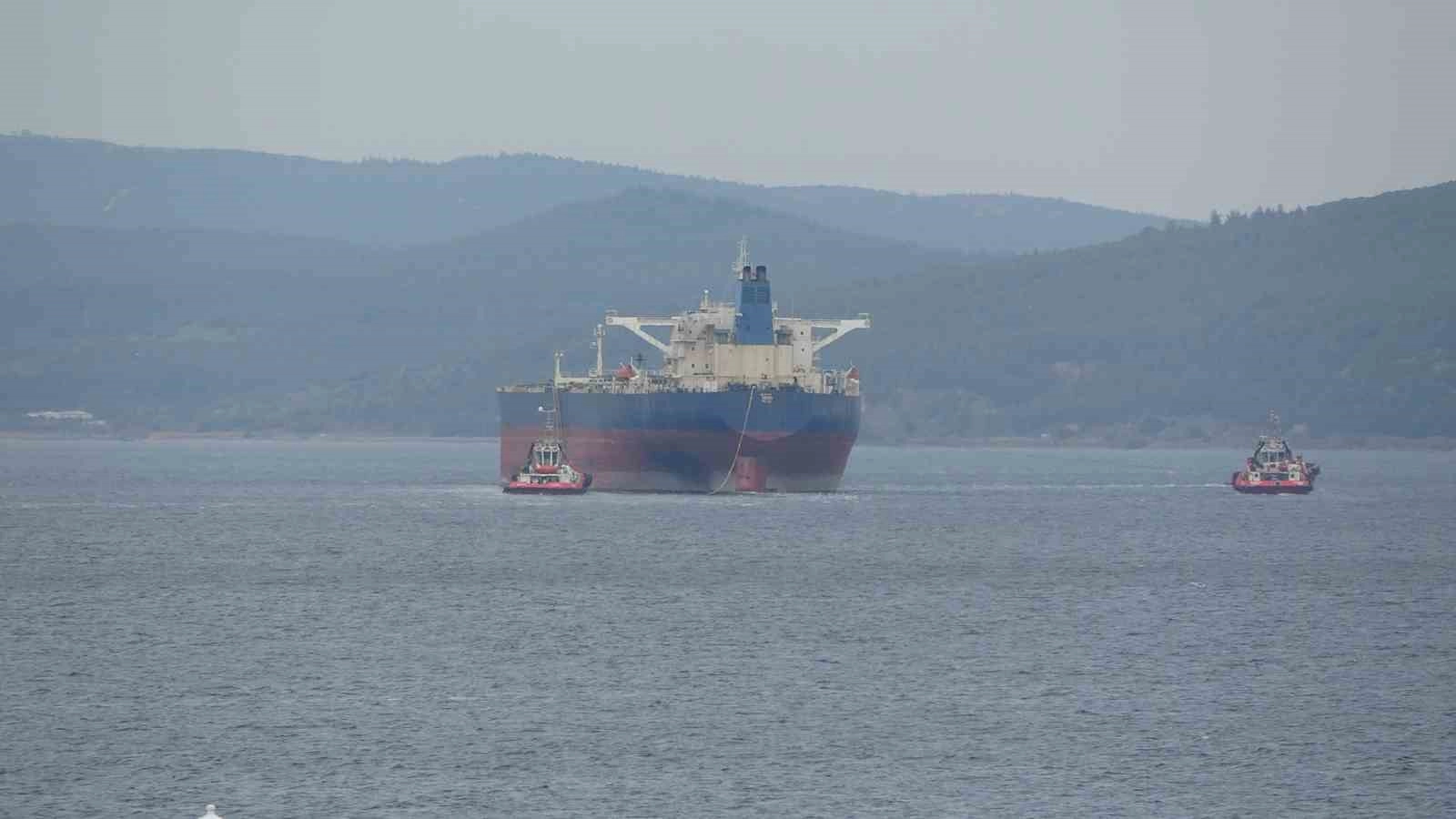 Mısır’dan Yalova’ya bakıma giden 274 metre uzunluğundaki tanker, Çanakkale Boğazı’ndan halat ile yedeklenerek geçti.