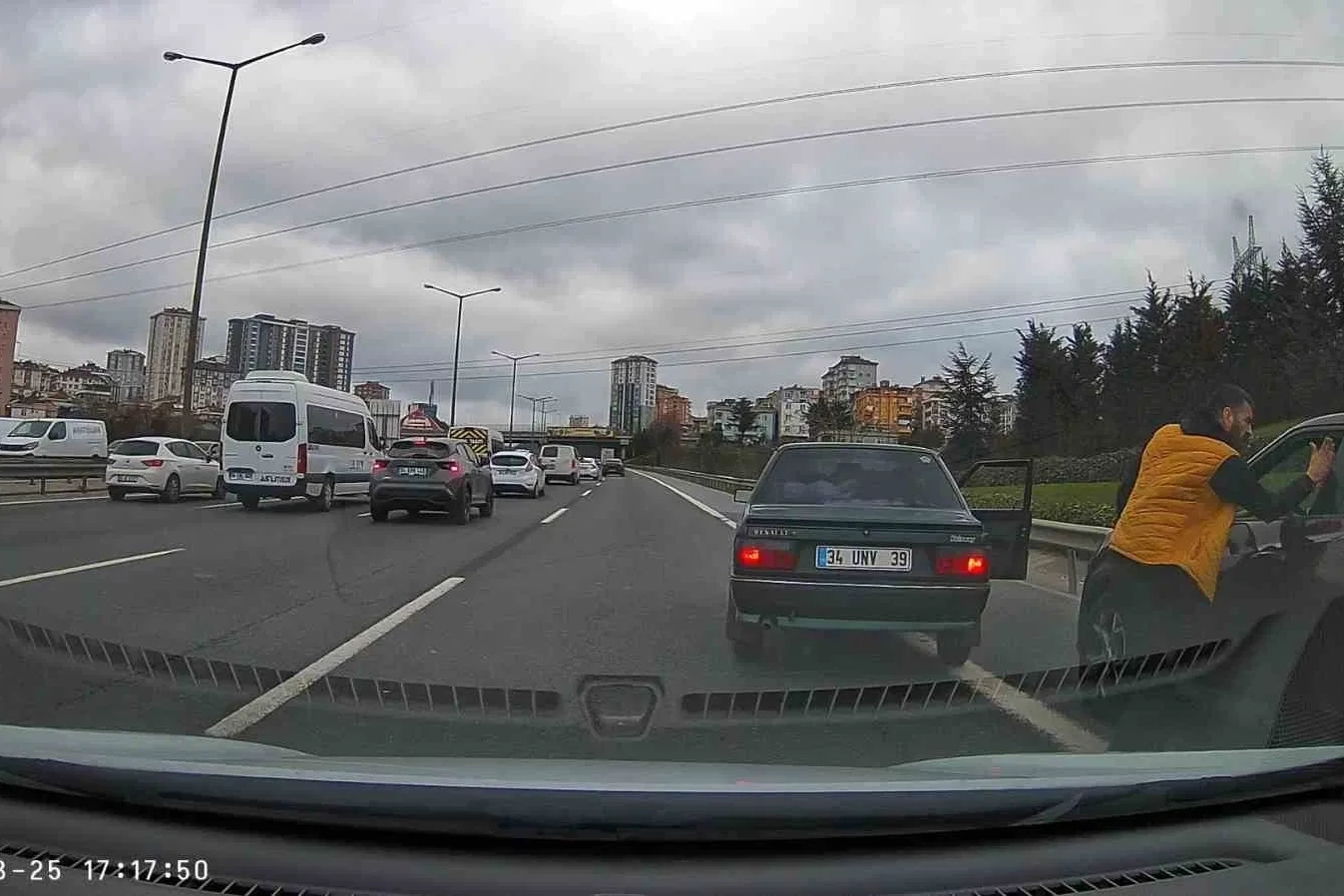 Ümraniye D-100 Karayolu üzerinde makas atmaya çalışan bir sürücü, yol vermediği gerekçesiyle sıkıştırdığı araç sahibine saldırdı. Trafiği birbirine katan öfkeli şoför, diğer sürücüye tokat atarak dehşet saçtı. Olay, D-100 Karayolu Ümraniye Kavacık yönü istikametinde meydana geldi. İddiaya göre, 34 ELC 191 plakalı Nissan marka araç, sağ şeritte seyir halindeyken 34 UNV 39 plakalı araç, yanındaki araca makas atmaya çalıştı. Önündeki kamyon nedeniyle sağ şeride geçemeyen 34 UNV 39 plakalı araç, sinirlenerek Nissan markalı araca şişe fırlatarak emniyet şeridine sıkıştırdı. Sıkıştırdığı aracın önüne kıran öfkeli sürücü, otomobilinden inerek 34 ELC 191 plakalı araç sürücüsüne tokat attı. Kavga nedeniyle sağ şeritte araçlar birikirken, sürücüler yaşanan olaya korna çalarak tepki gösterdi. Araçların ısrarlı uyarısı ve bir motosiklet sürücüsünün müdahalesinin ardından öfkeli sürücü olay yerinden güçlükle ayrıldı.