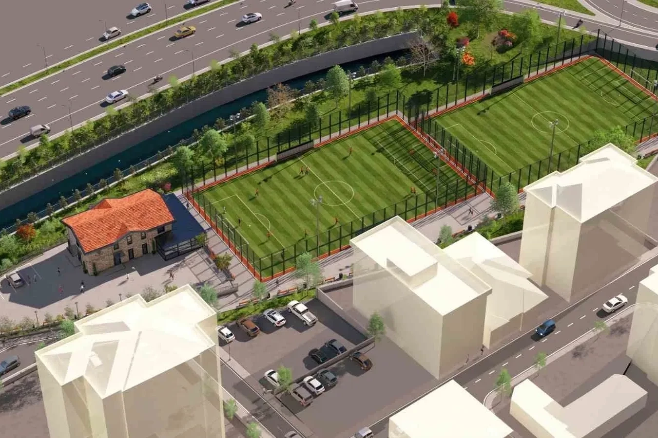 Ümraniye Belediyesi, 4 bin 820 metrekarelik modern mimarisiyle dikkat çeken yeni spor tesisinin temellerini atıyor. Sadece bir saha değil; kafesi, sosyal alanları ve toplantı salonlarıyla ilçeye tam donanımlı bir spor merkezi kazandırılıyor. Ümraniye Belediyesi, sportif faaliyetlere yönelik yatırımlarını artırarak ilçeye modern ve donanımlı tesisler kazandırmaya devam ediyor. Aşağı Dudullu’da toplam 4 bin 820 metrekarelik kullanım alanına sahip olarak planlanan tesis; bodrum, zemin ve çatı arası katlarından oluşuyor. Proje kapsamında alan içerisinde iki adet spor sahası yer alacak. Bodrum katta teknik hacimler bulunurken, zemin katta ıslak hacimler, soyunma odaları ve kafe alanı konumlandırılıyor. Çatı arası katında ise ıslak hacimler, soyunma odaları ve toplantı odası yer alacak. Sporun yanı sıra sosyal yaşamı da destekleyecek şekilde tasarlanan tesis, kullanıcılarına günün farklı saatlerinde keyifli vakit geçirebilecekleri bir ortam sunacak. Spor faaliyetlerinin ardından ziyaretçiler, tesis bünyesindeki kafe alanında dinlenme ve sosyalleşme imkânı bulacak. "Sporla iç içe bir yaşam merkezi kuruyoruz" Ümraniye Belediye Başkanı İsmet Yıldırım, projeye ilişkin yaptığı değerlendirmede, Aşağı Dudullu’da hayata geçirilecek tesisle komşulara modern ve donanımlı bir spor alanı kazandırılacağını belirtti. Başkan Yıldırım, spor sahaları, dinlenme alanları, sosyal buluşma noktaları ve kafe bölümüyle projenin yalnızca bir tesis değil, sporla iç içe bir yaşam merkezi olacağını ifade etti. Gençlerin enerjisine alan açan, ailelerin keyifle vakit geçirebileceği bir projenin yakın zamanda temelinin atılacağını belirten Yıldırım, yatırımın Ümraniye’ye hayırlı olmasını temenni etti. Modern mimari anlayışla projelendirilen yapı, çevresinde oluşturulacak peyzaj ve açık alan düzenlemeleriyle de dikkat çekiyor. Dinlenme ve buluşma noktalarıyla zenginleştirilecek alan, hem spor yapanlara hem de ziyaretçilere hitap eden nitelikli bir yaşam alanı olarak hizmet verecek.