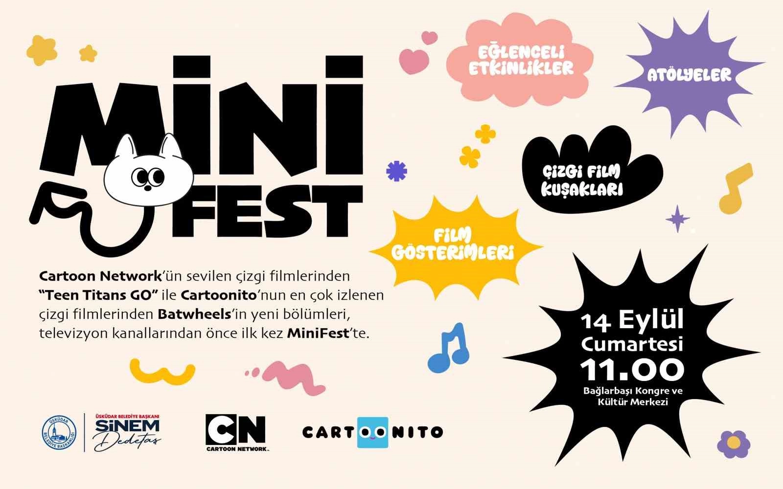14 Eylül Cumartesi günü Bağlarbaşı Kongre ve Kültür Merkezi’nin avlusunda gerçekleşecek Mini Fest etkinliğinde çocuklar ve gençler için gün boyu atölyeler, film gösterimleri, çizgi film kuşağı, kostüm karakterler ile sosyalleşebilecekleri ve eğlenebilecekleri bir alan oluşturacak. Mini Fest kapsamında Cartoon Network & Cartoonito işbirliği ile Cartoon Network’te yayınlanan “Teen Titans GO” ve Cartoonito’da yayınlanan “Batwheels” çizgi filmlerinin yeni bölümlerden birer tane bölüm alanda gösterilecek.