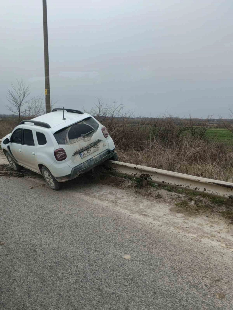 Edirne’de Kapıkule yolu üzerinde sürücüsünün direksiyon hâkimiyetini kaybettiği otomobil bariyerlere çıkarak durabildi.