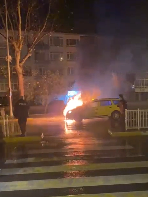 Alınan bilgiye göre, dün gece saatlerinde Cengiz Koçal Caddesi İDO mevkiinde seyreden taksi sürücüsü, motor kısmından dumanların yükseldiğini fark edince aracını yolun kenarına çekti. Taksi kısa sürede alevlere teslim oldu. Yangın, olay yerine sevk edilen itfaiye ekipleri tarafından kontrol altına alınarak söndürüldü. Yangın sonrasında araçta maddi hasar oluştu.