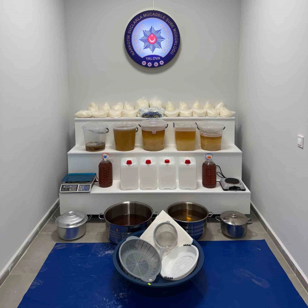 Yalova’da bir ikameti uyuşturucu imalathanesine çeviren şüphelilere yönelik düzenlenen operasyonda 138 kilo uyuşturucu madde ele geçirilirken, gözaltına alınan 6 zanlı tutuklandı.