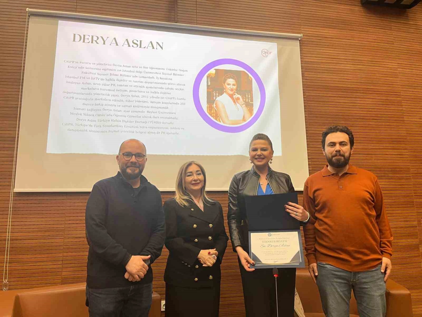 Öğrencilerin sorularını cevaplayan Derya Aslan, iletişim sektöründe başarılı olabilmenin temelinde deneyim, disiplinli çalışma ve sürekli gelişim bulunduğunu vurguladı. Kariyer yolculuğunda doğru tercihlerin, kişisel ilgi alanları ile örtüşen bir yönelime sahip olması gerektiğinin altını çizen Aslan, öğrencilerin kendilerini geliştirecek ve iletişim becerilerini pekiştirecek hobiler edinmelerinin önemine de dikkat çekti. Aslan, yeni mezunları heyecanla beklediklerini de belirtti.