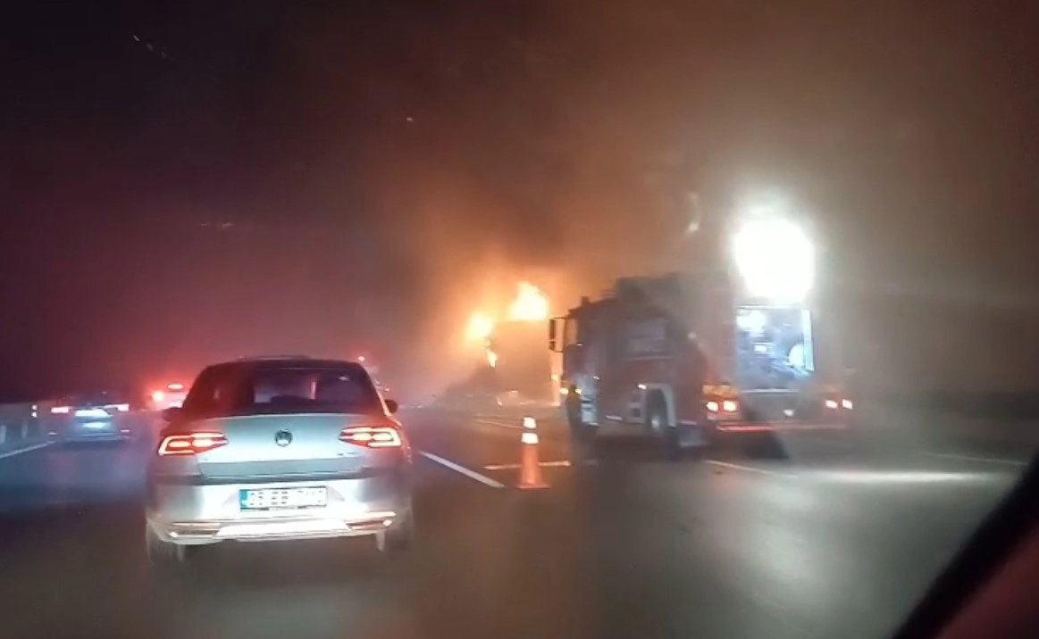 Öte yandan, tırdan yükselen alevler bir vatandaş tarafından cep telefonu kamerası ile kaydedildi. Görüntülerde alevlerin yükseldiği tırın dorse kısmına itfaiye ekiplerinin müdahale ettiği görülüyor.