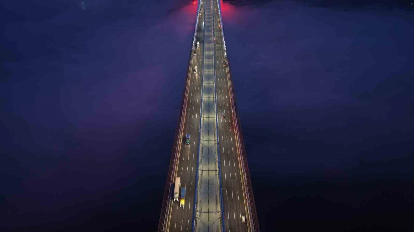 Akşam saatlerinin mavi tonları ile birleşen sis, köprü ve çevresinde büyüleyici bir atmosfer oluşturdu. Özellikle yüksek kesimlerde etkisini artıran sis nedeniyle köprünün kuleleri zaman zaman tamamen gözden kayboldu.