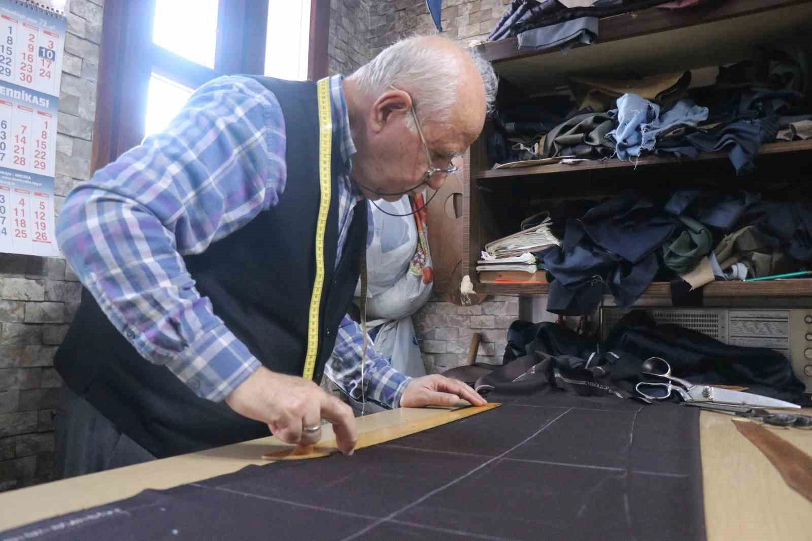 Ağabeyinin yanında çırak olarak mesleğe başlayan adam, 50 yıldır ekmeğini kumaşlara şekil vererek çıkartıyor.