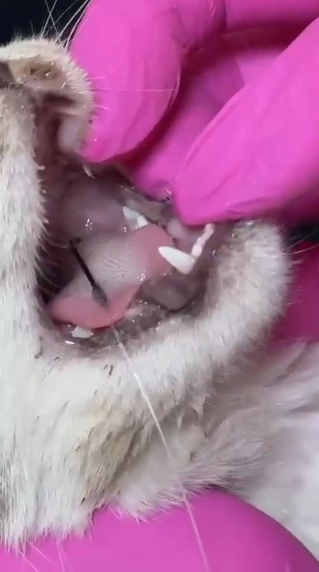 Olayı anlatan anne Duygu Kural Aykut, "Kızım parkta otururken yanlarına bir kedi geliyor. Kedinin ağzından sarkan ipi fark ediyorlar. Sonra yakalayıp ağzını açıp bakmışlar. Diline batan kancayı görmüşler. Onun üzerine beni arayarak durumu anlattı. Hemen veterinere götürelim dedim. O sırada kedi uzaklaşmaya başlarken kızım arkasından gidiyor. Kedi resmen neden böyle olduğunu gösterir gibi o atık yiyeceklerin olduğu yere gidiyor kedi. Orda o balık kafalarından kancaların battığını anlıyoruz. Sonra hemen veteriner Pınar hanımı aradık veterineri kapatmasına rağmen koşa koşa gelerek açtı kliniği. Kedinin her yerini kontrol etti. Aynı zamanda bacağının üzerine de bir kanca battığını fark etti. Sonrasında kancaları çıkardı, antibiyotik iğnelerini ve gelmişken aşılarını da yaptı. Bize o şekilde teslim etti" dedi.