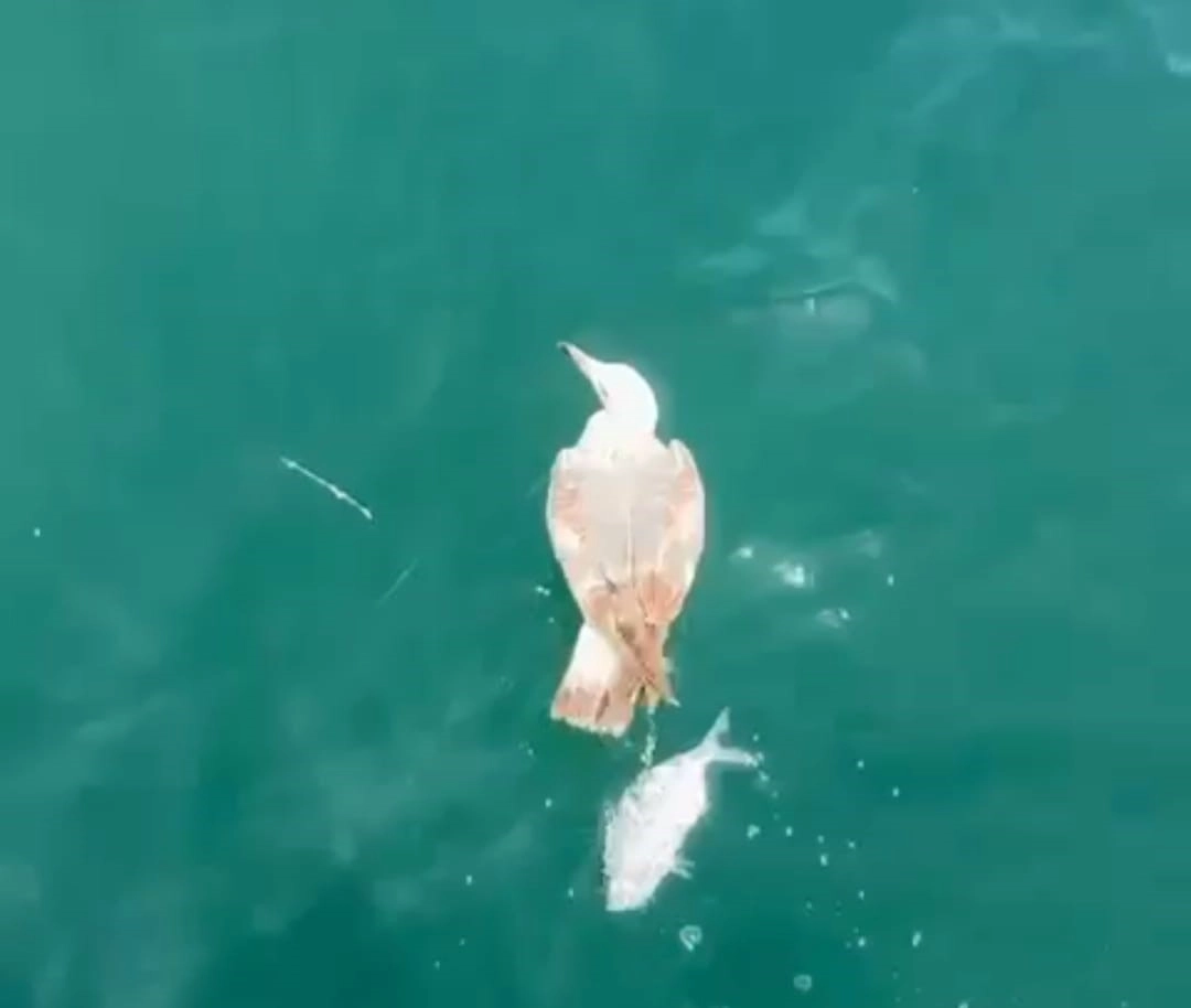 Çanakkale’de İl Tarım ve Orman Müdürlüğü Su Ürünleri Kontrol ekiplerince deniz denetimi gerçekleştirildiği sırada ucunda balık bulunan oltaya takılı martı zarar görmeden kurtarılarak doğaya salındı.