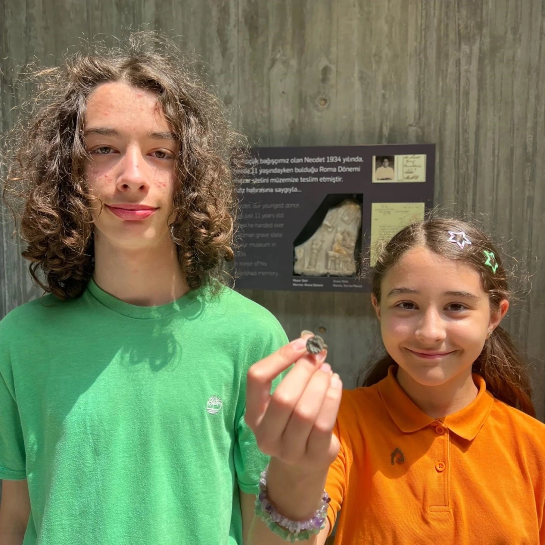 Troya Müzesi sosyal medya hesabından yapılan paylaşımda bu anlamlı bağışı gururla duyurduklarını belirterek, "Troya Müzesi ailesi olarak bugün çok anlamlı bir bağışı gururla duyuruyoruz. Ayvacık, Demirci köyünden iki pırıl pırıl kardeş, 10 yaşındaki Ümmühan Hatun Ortaokulu öğrencisi Aden Dayangaç ve 14 yaşındaki Ayvacık Fen Lisesi öğrencisi Doran Dayangaç, müzemize Doğu Roma Dönemi’ne ait bir yüzük mühür bağışladı. Mühür yüzüğün üzerinde, Petrus’un Hz. İsa’yı inkarına gönderme yapan horoz figürü bulunmaktadır. Bu anlamlı hikaye, Aden’in geçtiğimiz yıl müzemizde gerçekleşen ’Takeover Day (Çocuklar Müzeyi Ele Geçirdi)’ projesinde bir günlüğüne Troya Müzesi ailesine katılmasıyla başladı. Evlerinin yakınlarında bulduğu bu ilginç nesnenin tarihi bir eser olabileceği şüphesiyle abisi Doran ile paylaşan Aden, abisinin de desteğiyle bu kıymetli hediyeyi müzemize ulaştırmaya karar verdi. Aden ve Doran’ın bu duyarlı ve örnek davranışları, tarihe sahip çıkma bilincinin en güzel göstergesi. Güzel yüreklerinde taşıdıkları bu büyük miras sevgisiyle bizleri derinden etkilediler. Sevgili Aden ve Doran, bu anlamlı bağışınız için sizlere sonsuz teşekkürlerimizi sunuyoruz. Sizler gibi bilinçli ve duyarlı gençlerin varlığı, geleceğe olan inancımızı daha da güçlendiriyor" ifadelerine yer verildi.
