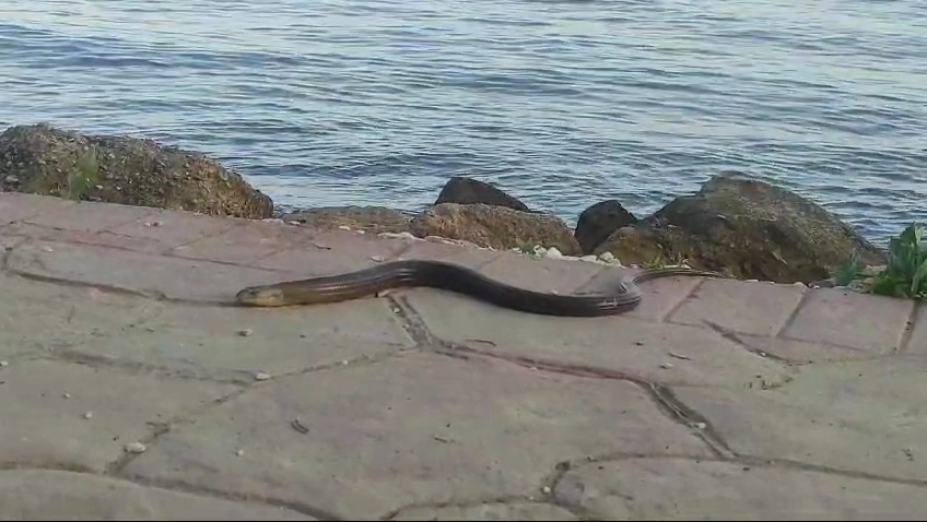 Tekirdağ’ın Süleymanpaşa ilçesinde sıcakların başlamasıyla birlikte yılana benzeyen ‘Oluklu kertenkele’ doğada görülmeye başladı. Sahilde kendini gösteren bir oluklu kertenkele meraklı bakışlar arasında dolaştı.